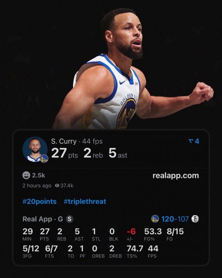 据统计,这是库里生涯第354次单场至少砍25分且至少命中5记三分,NBA历史独一档,哈登196次排名第二,利拉德176次第三。